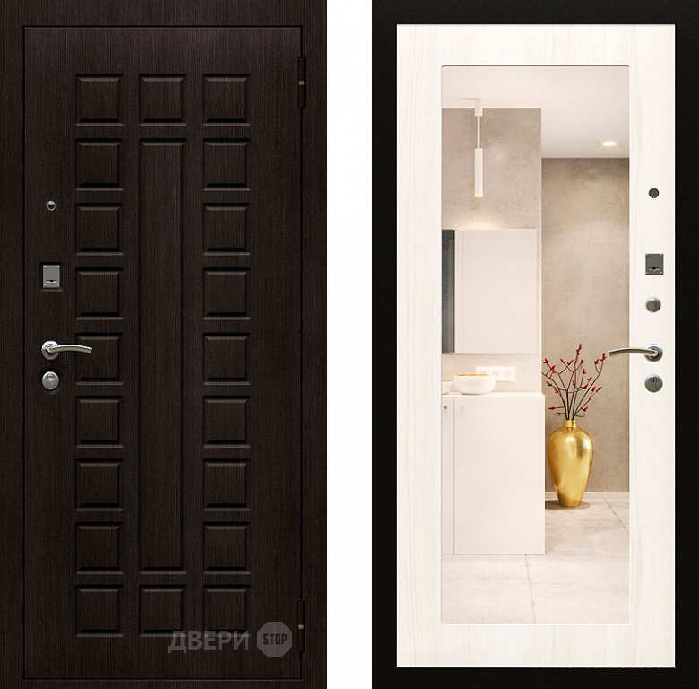 Входная металлическая Дверь Райтвер Сенат-лайф с зеркалом Беленый Дуб в Павловском Посаде 860х2050 мм