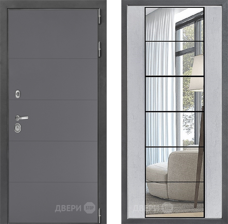 Входная Дверь Дверной континент ДК-3/649 ФЛЗ-2 Зеркало Бетон светлый 860x2050 мм
