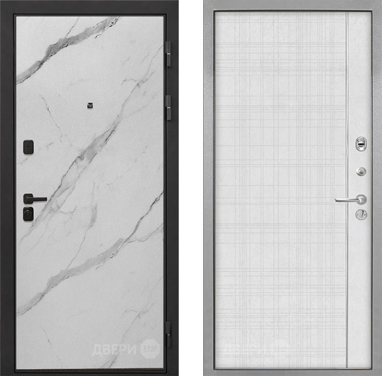 Входная Дверь Интекрон (INTECRON) Профит Black Мрамор Арктик В-07 с молдингом Лофт белый 860x2050 мм