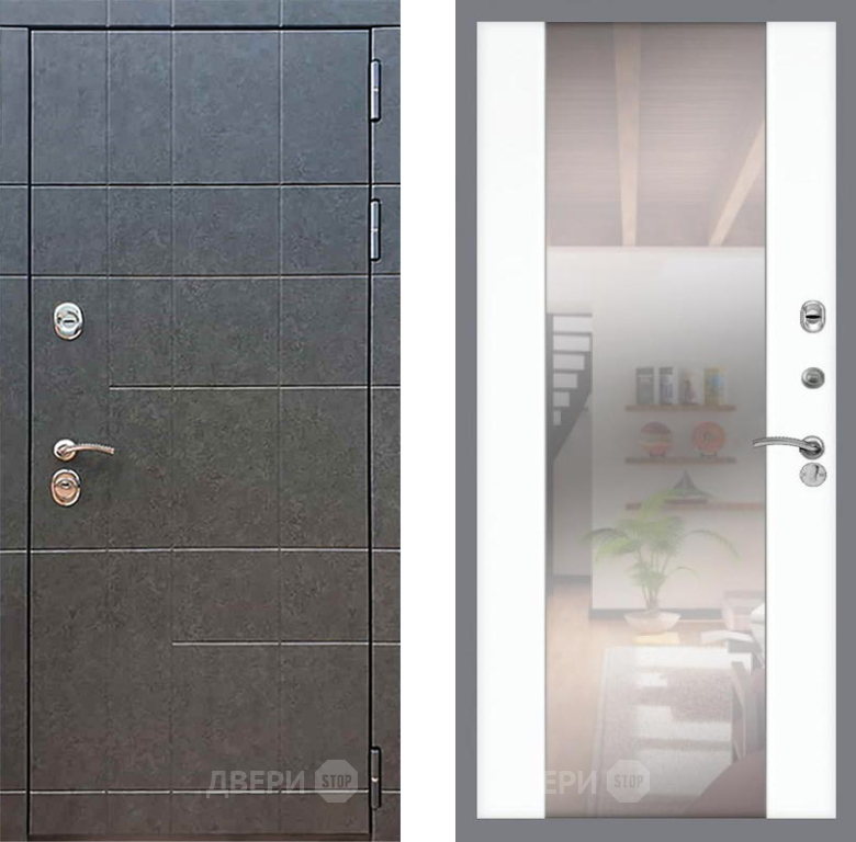 Входная Дверь Рекс (REX) 21 СБ-16 Зеркало Силк Сноу 860x2050 мм