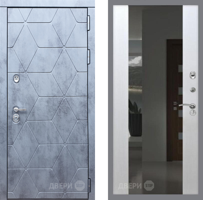 Входная Дверь Рекс (REX) 28 СБ-16 Зеркало Белый ясень 860x2050 мм