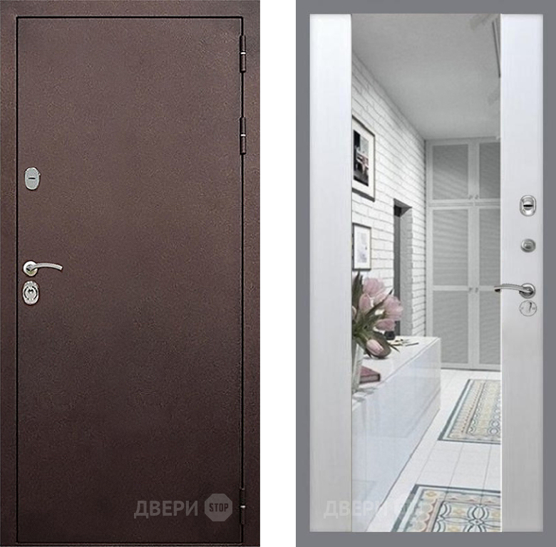 Входная Дверь Стоп КЛАССИК Медь Зеркало СБ-16 Лиственница беж 960x2050 мм