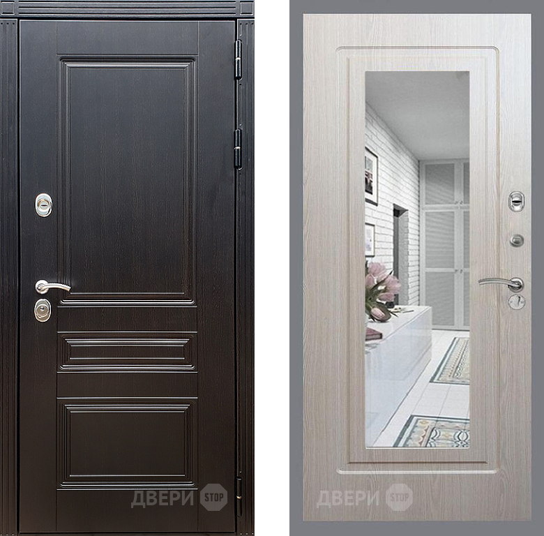 Входная Дверь Стоп МЕГАПОЛИС Зеркало ФЛ-120 Беленый дуб 860x2050 мм